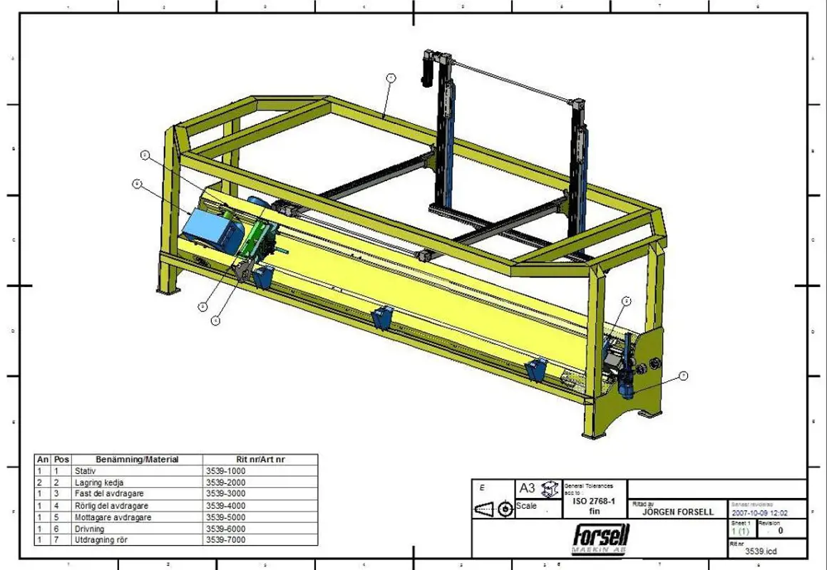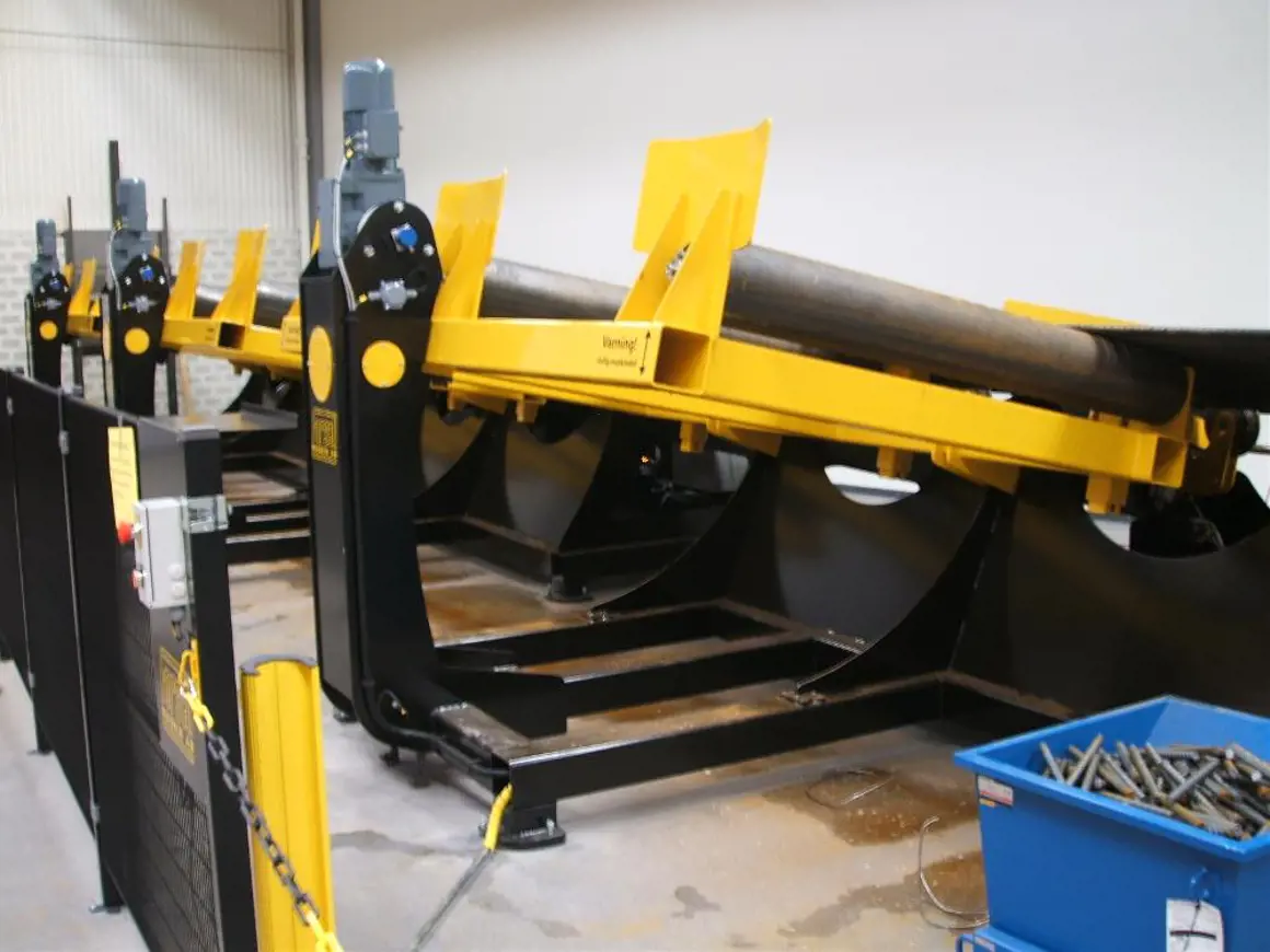 To design a puller that automatically lifts a mandrel into the puller. Pulls the composite pipe off the mandrel with 15 tons of force. After the removed pipe, the machine lifts the pipe onto a conveyor.
